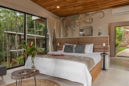 Entdecke den neu errichteten Bungalow in Costa Rica, der auf eleganten Metallstelzen thront und mit grosszügigen Fenstern sowie hohen Decken begeistert. Im modernen Boho-Stil gestaltet, vereint er eine einladende Atmosphäre mit stilvoller Gemütlichkeit! Die vollumfängliche Ausstattung lässt keine Wünsche offen. Ein besonderes Highlight ist die Dusche, die mit einem Fenster ins üppige Grün aufwartet und ein erfrischendes Duscherlebnis bietet.