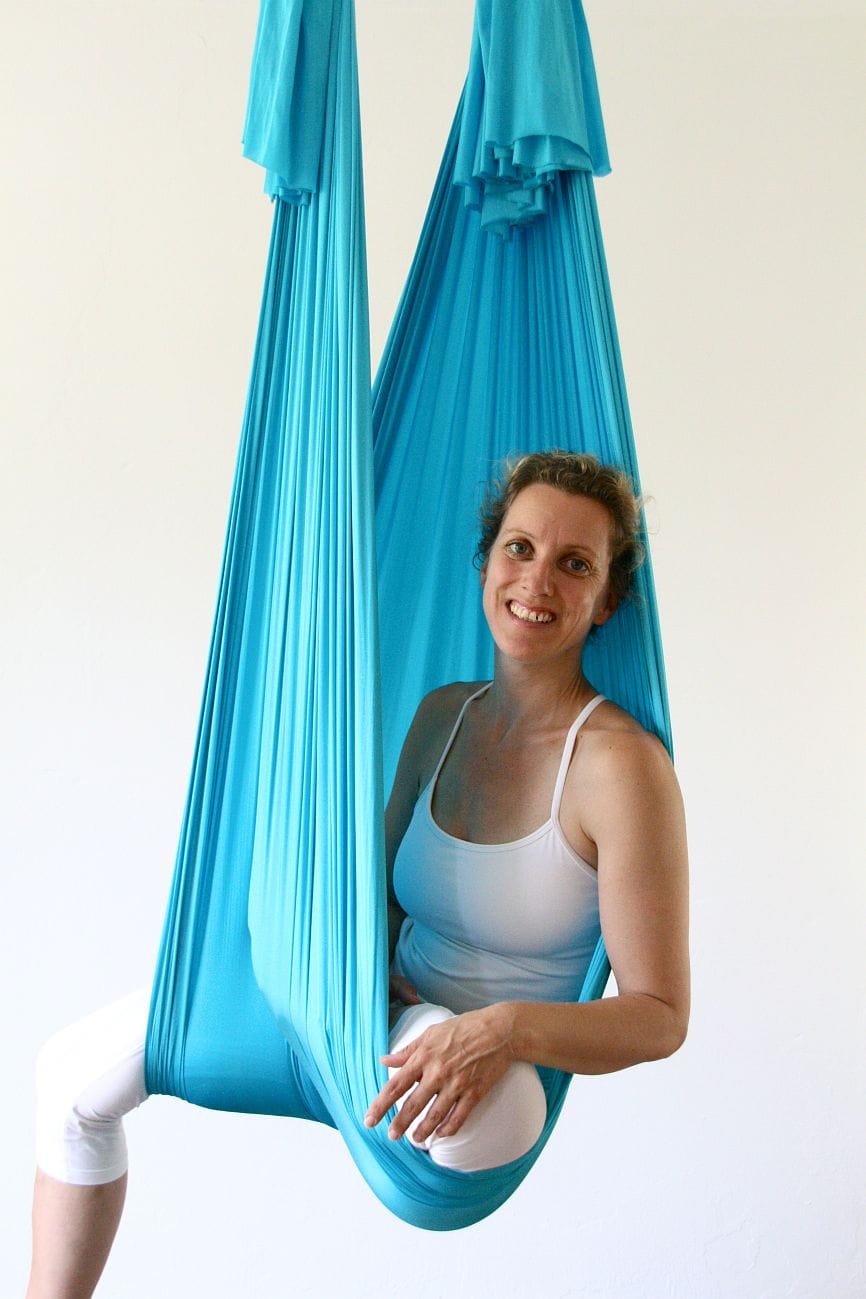 Mit Hilfe der Schwerkraft lassen sich die üblichen Asanas ganz neu erfahren! Beim DANA® AERIAL YOGA geht es um einen spielerischen Umgang mit der Schwerkraft.
