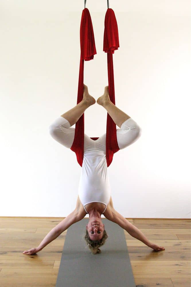 Das Abgeben des eigenen Körpergewichtes an das Tuch, das viel mit Loslassen und Vertrauen zu tun hat, das Arbeiten an der Flexibilität und der Stärkung des eigenen Körpers sind zentraler Inhalt dieses Yogas.